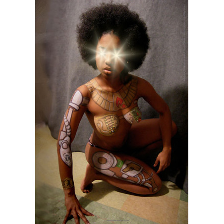 An experimental blend of ancient Egyptian and technological design from a bodypaint photo session in early 2005, which was also used for promotion of Galaxy 9 & Big 40''s first bodypaint show on 6 August that year.